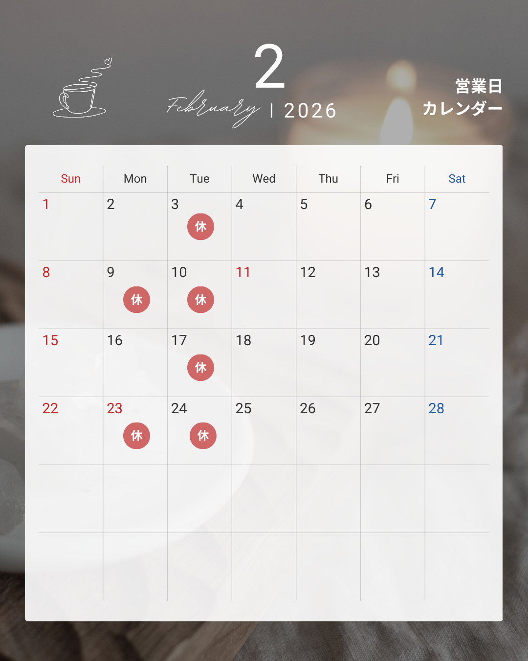 2月の営業日のお知らせ